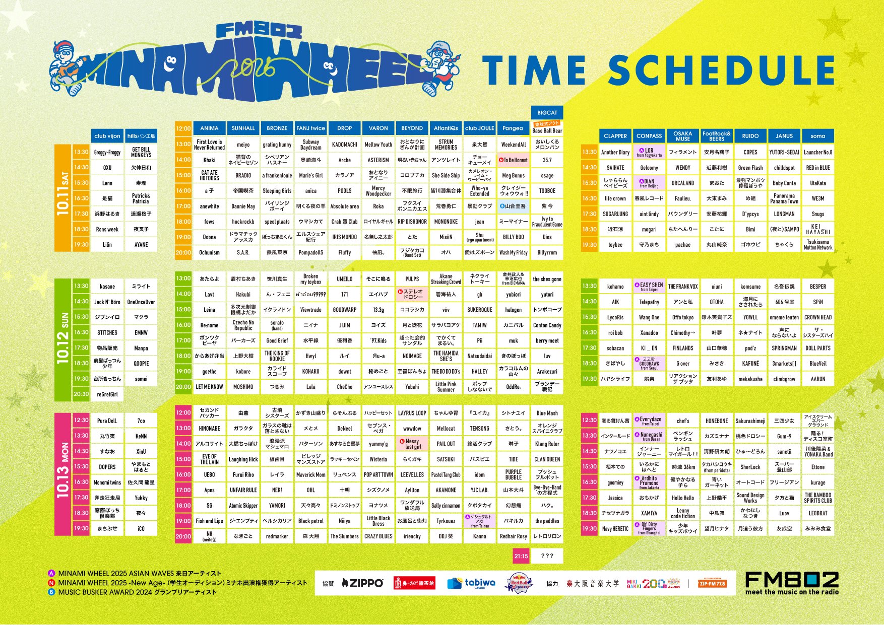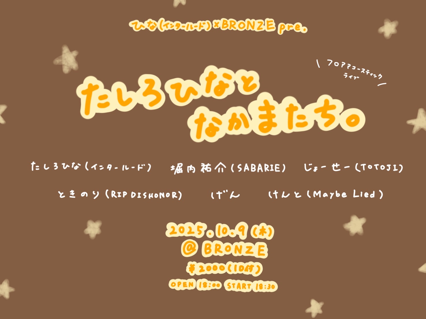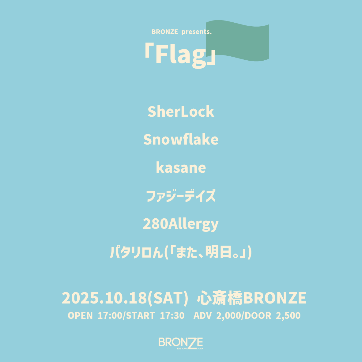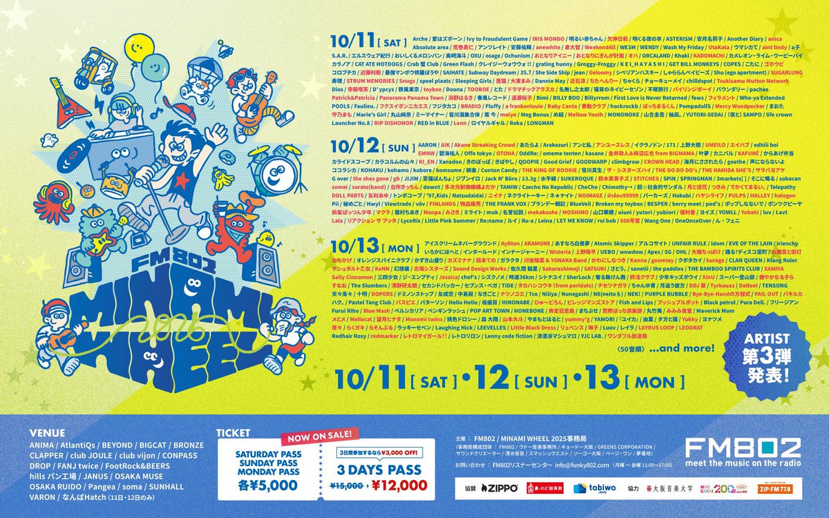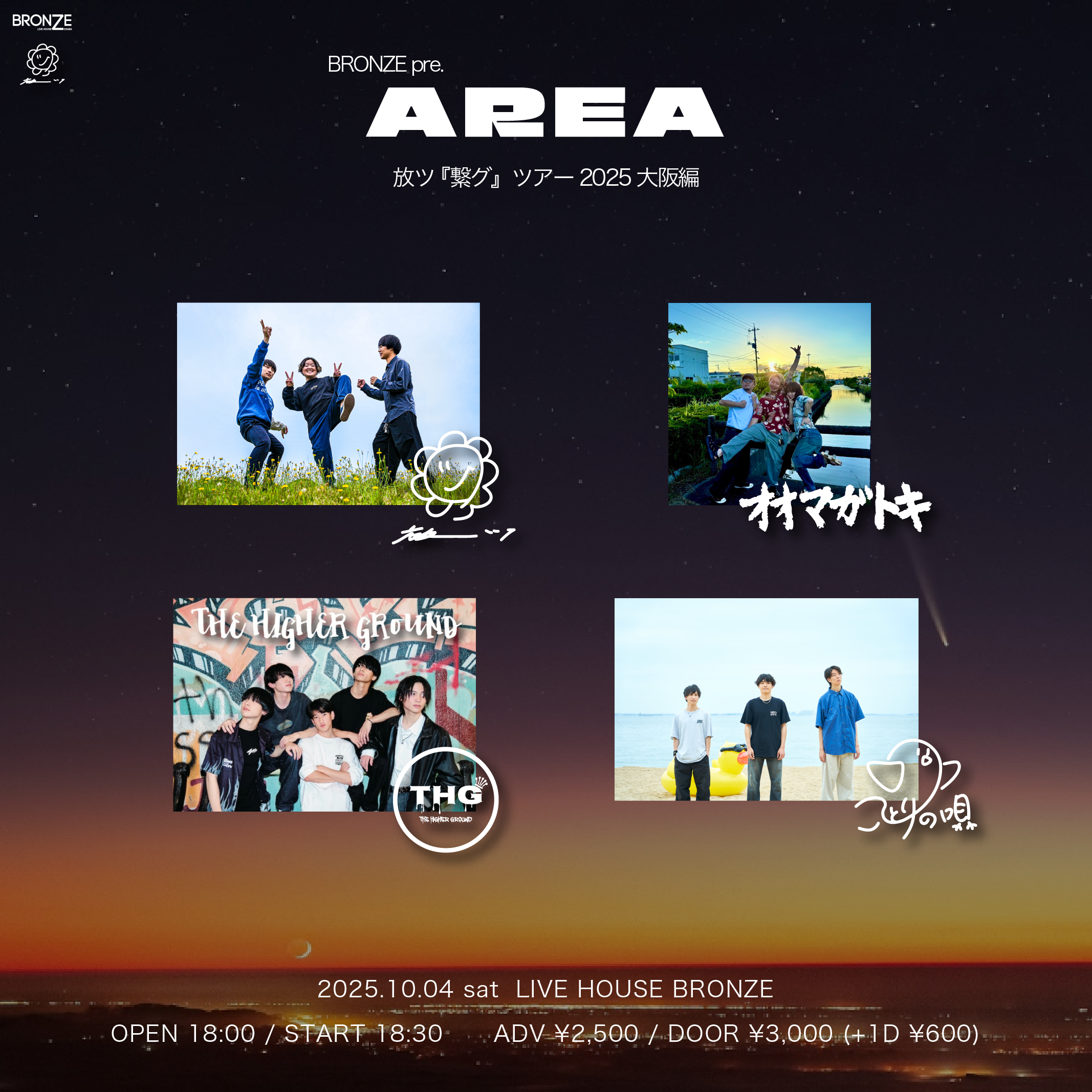 ammo / 炙りなタウン / アルステイク / the奥歯's / OCEANS / climbgrow / SHE'll SLEEP / 健やかなる子ら / hananashi / Hyuga / Blue Mash / マタノシタシティー / ミニマムジーク / 村上 想楽 / The Rusted Crown