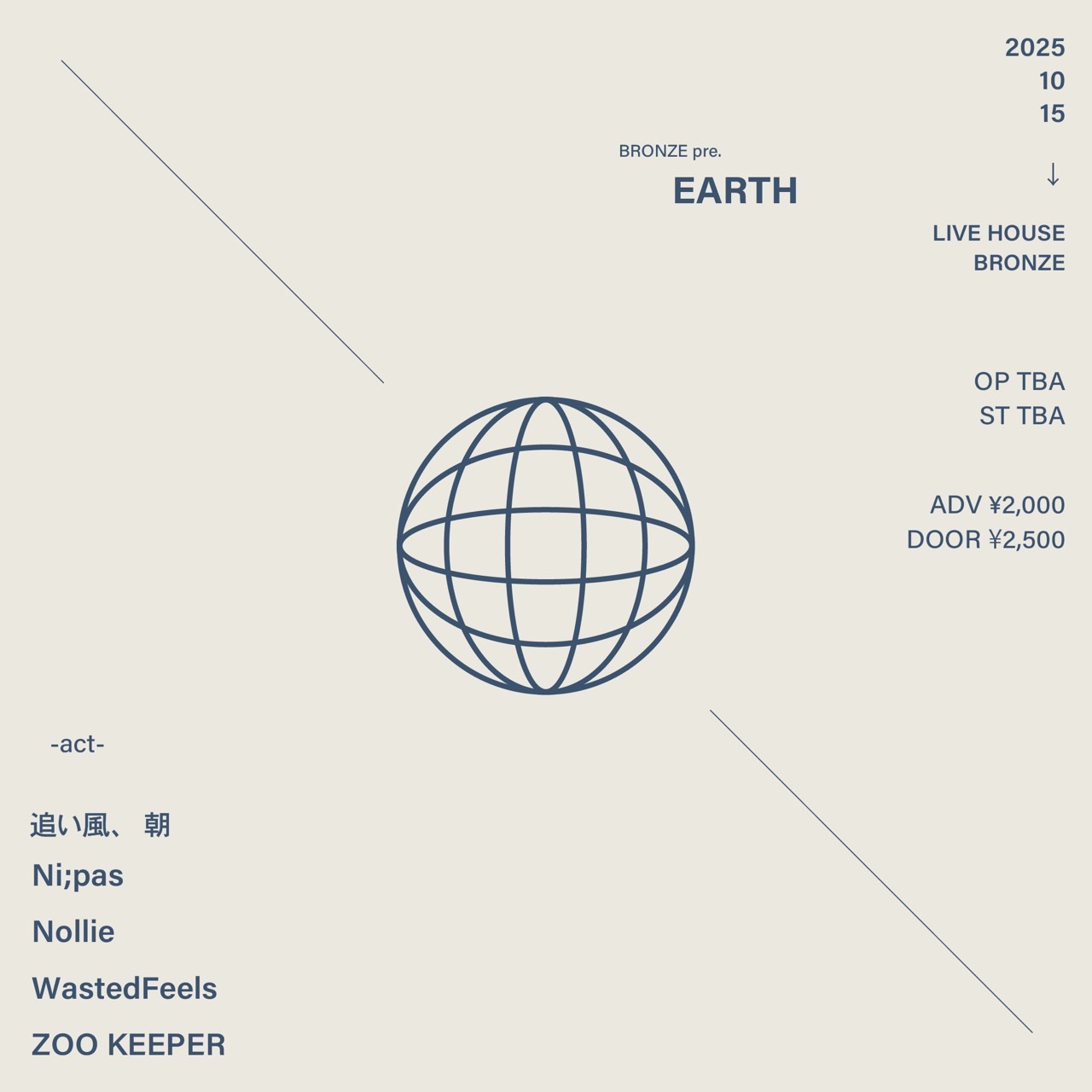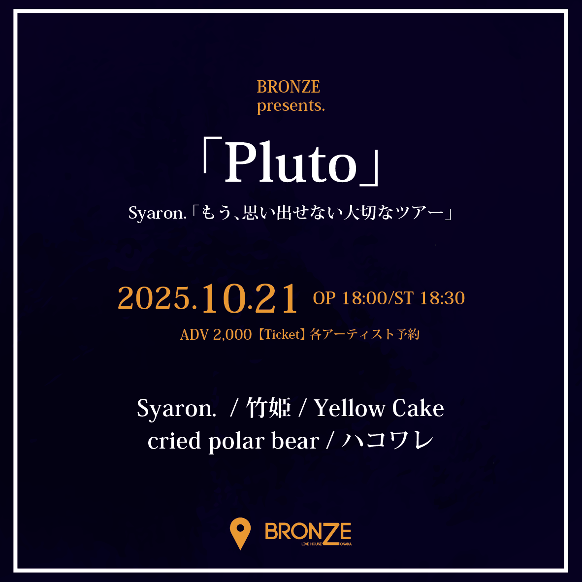 TICKET adv ¥2000 door ¥2500(別途1D ¥600)