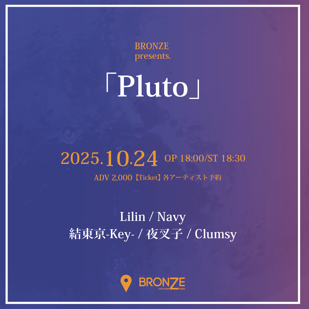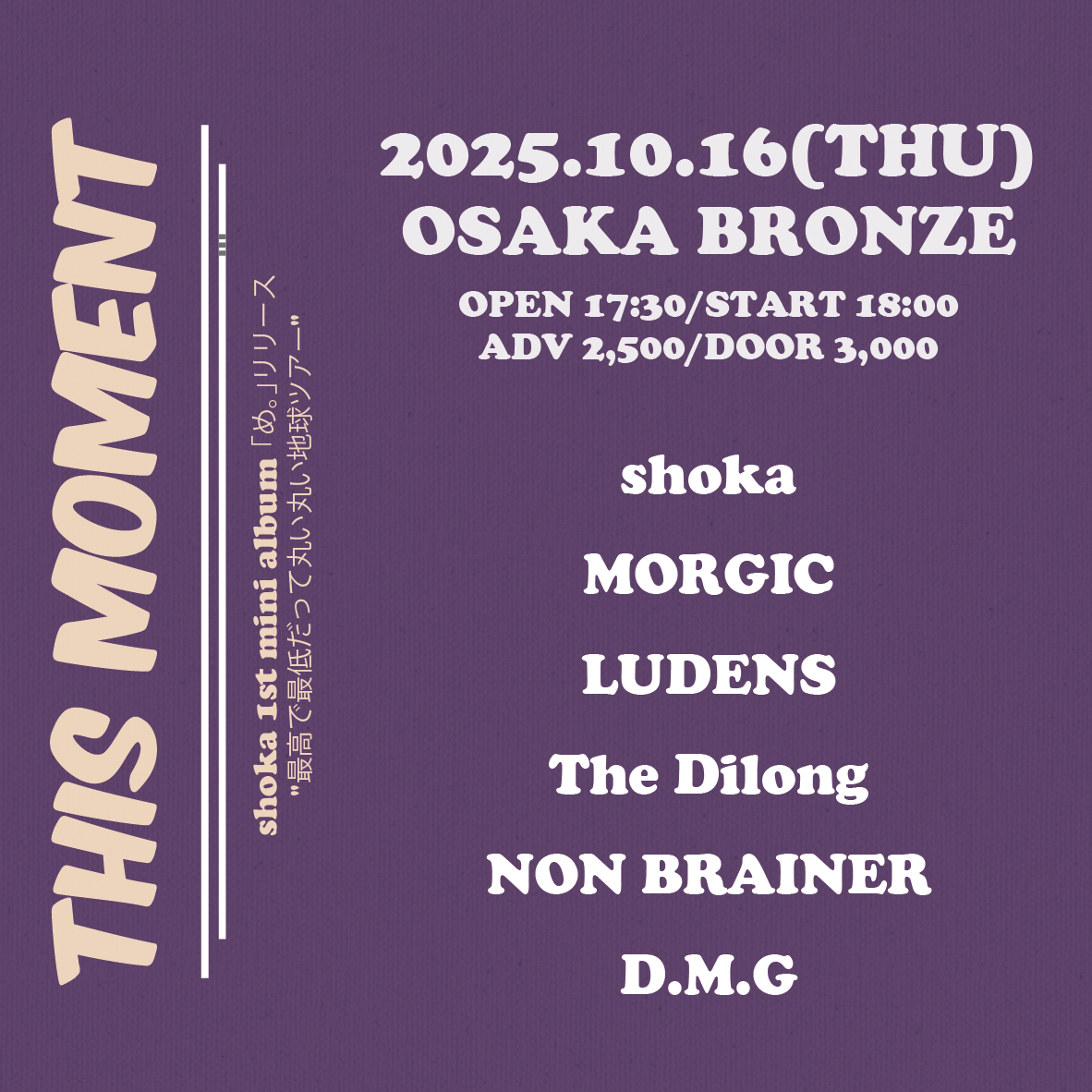 TICKET adv ¥2500 door ¥3000(別途1D ¥600)