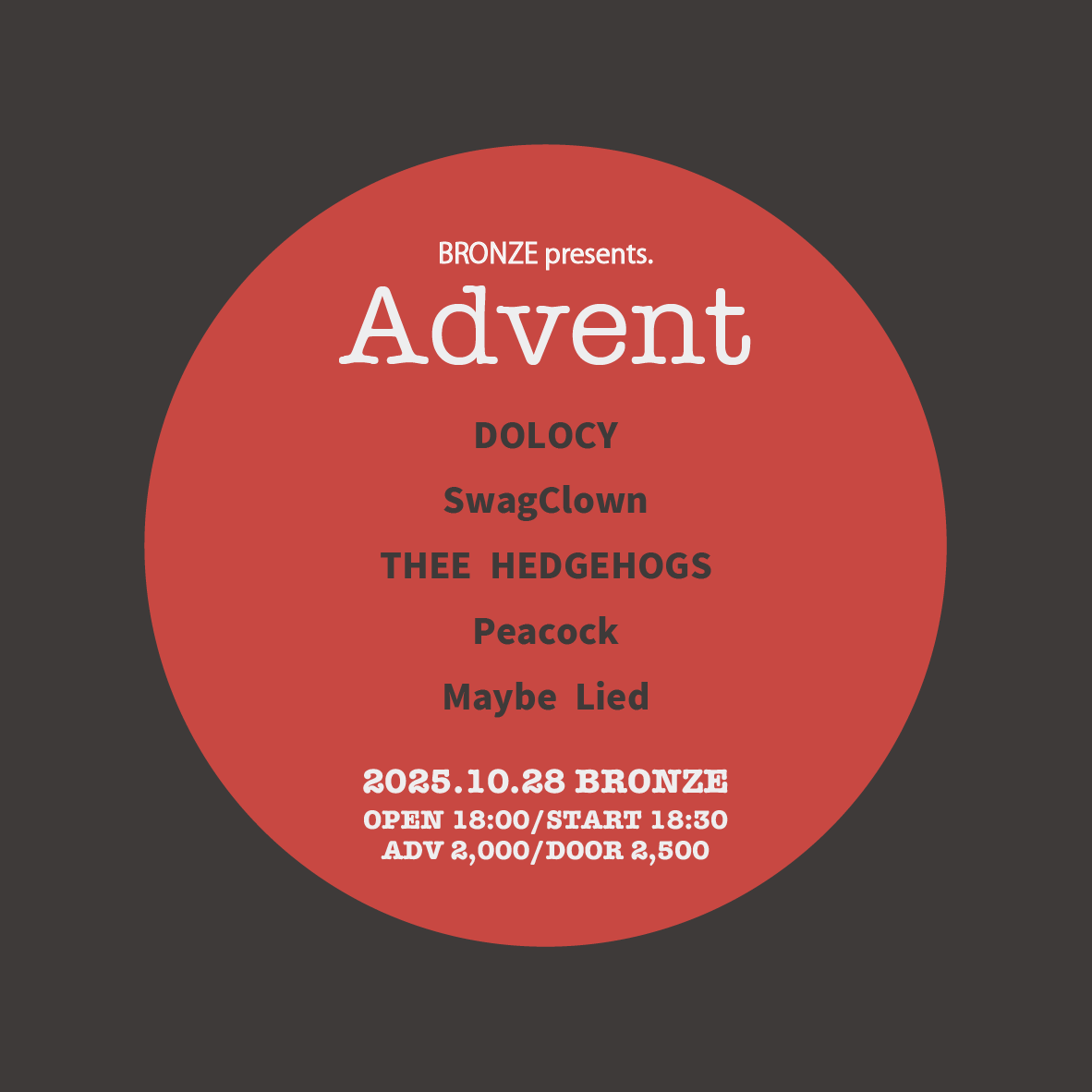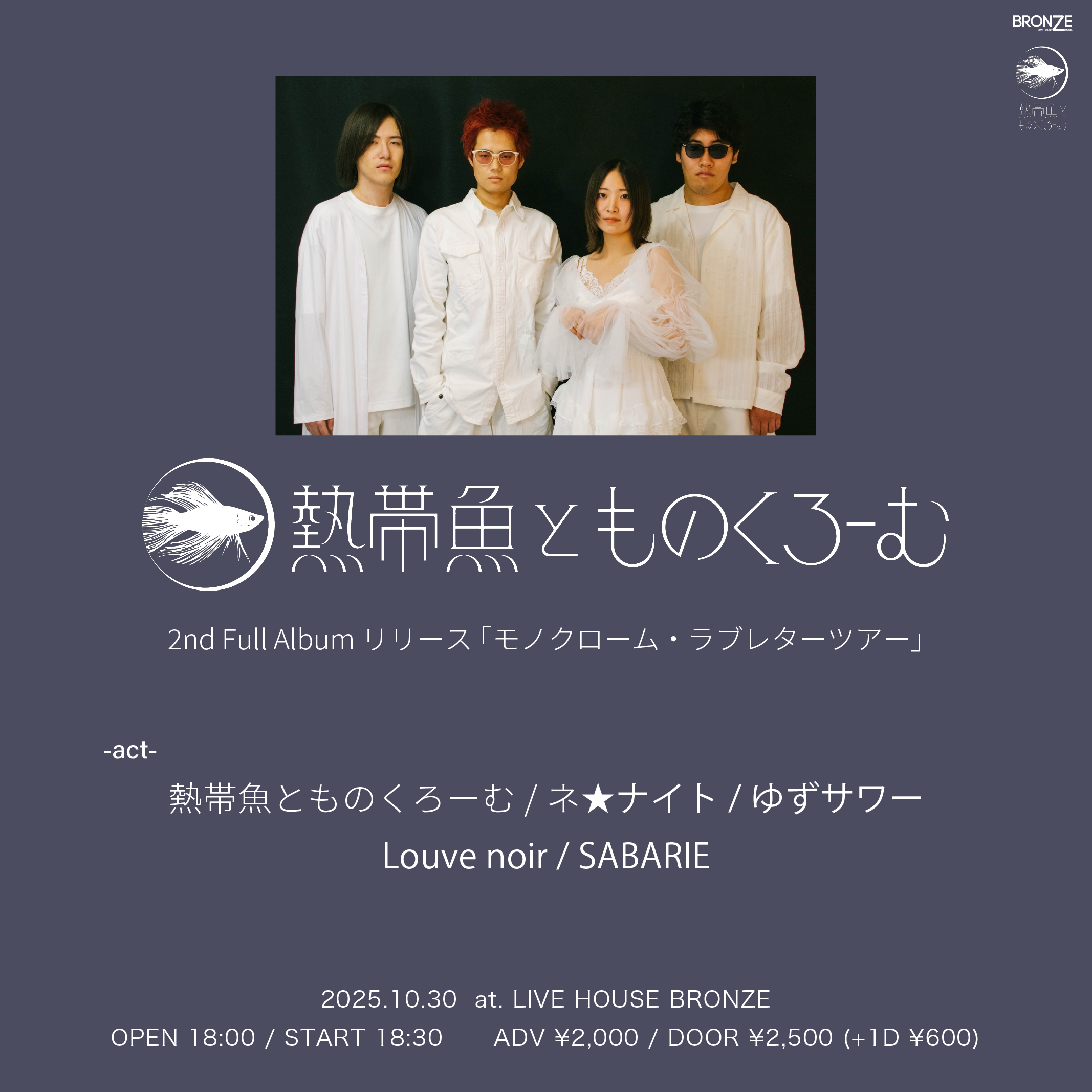 TICKET adv ¥3500 door ¥4300(別途1D ¥600)